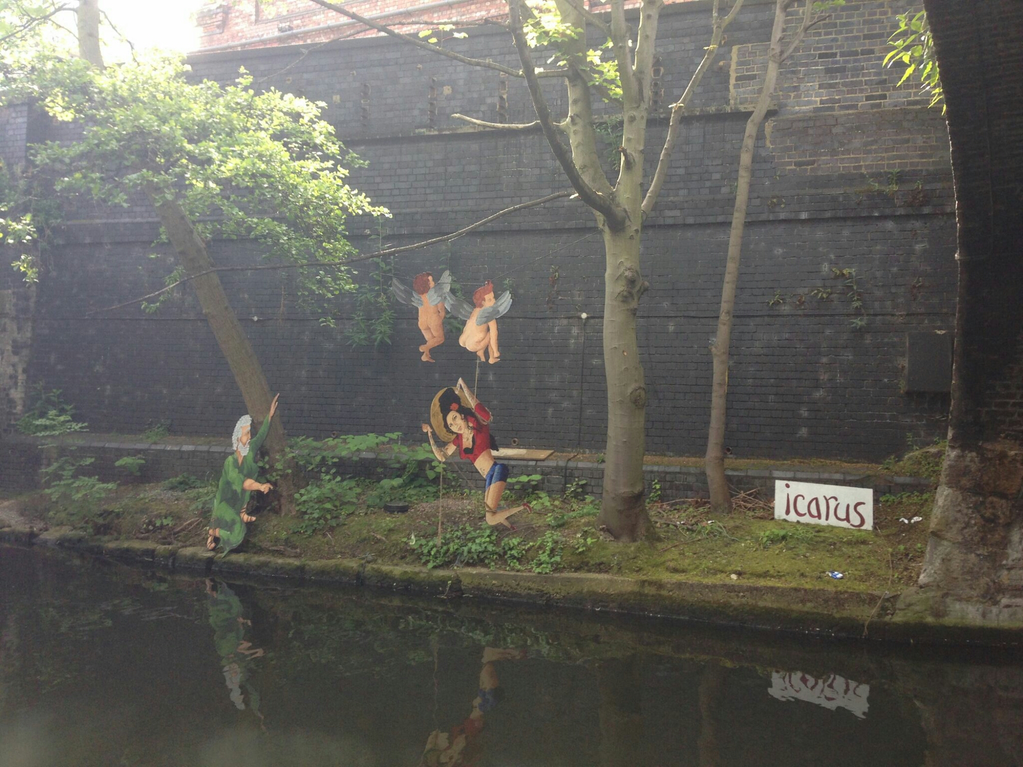 We parted ways at pub closing time (midnight), and I headed back to my hostel, intending to write a blog post and get some sleep. Instead, I got down to the chill room to find a dozen people with several free pitchers of beer and my plans quickly changed. I started chatting with a Canadian on the last night of his month-long Europe trip and a Brit who was at the hostel for an extended stay. We hit it off famously and just kept talking (about life, society, the universe…) as the number of hostelers around us dwindled to five, to two, until finally we were the last ones up. Finally, it was 7am and the free breakfast had opened. The Canadian had a few hours to kill before his flight, and we all had to be checked out by 10 am anyway, so we decided to go wander around Camden. It was a gorgeous day, we walked along a river walk spotted with graffiti and some very strange wood cutout figures, and had street food at the Camden Lock Market. My friend left to catch his plane and I headed back to the hostel and napped for about seven hours. It may not have been the best series of events for combating jetlag, but I wouldn’t have had it any other way.