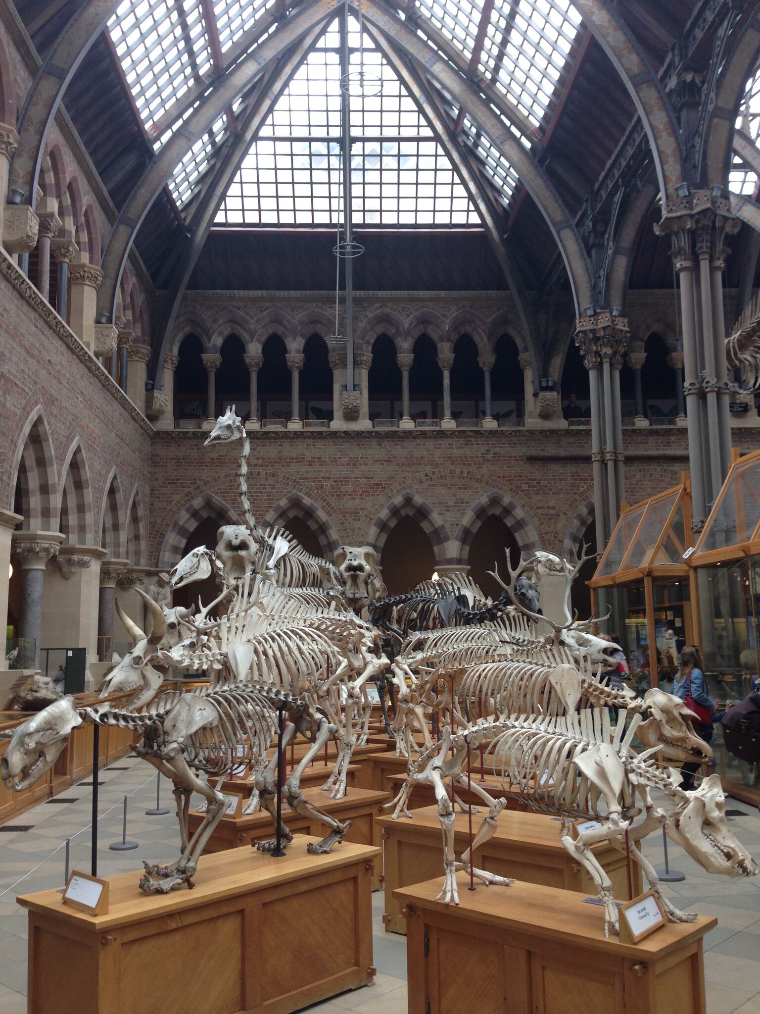 Our friend Hrothgar couldn’t meet up with us until evening, so Felix and I stuck with our original plan to see the Oxford Museum of Natural History. I always enjoy visits to Natural History Museums, but this one was particularly spectacular, from the architecture and columns each made from a different marble to the only remaining soft tissue specimen from the extinct Dodo in existance. We followed this by surreptitiously exploring Oxford’s Wyndham College, supposedly closed to the public at the time, followed by seeking out some traditional English fare at a pub. We split a fish pie and a rabbit pie, and both were fantastic, though I was somewhat unexpectedly partial towards the fish pie.
